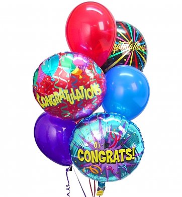 BALLOON BOUQUET3 Mylar congrats and 3 color balloons. |