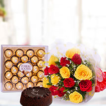 A Birthday FullaReach out to your pals/ loved ones on their special day and wish 'em a wonderful time WITH cup cake, 24 pcs ferrero and 18 mix roses bunch |