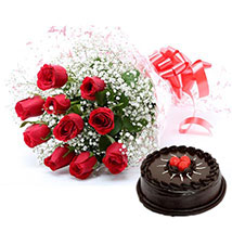 A very special loveA chocolate cake and a dozen red rose bunch would be the perfect gift to send for a very special love. |