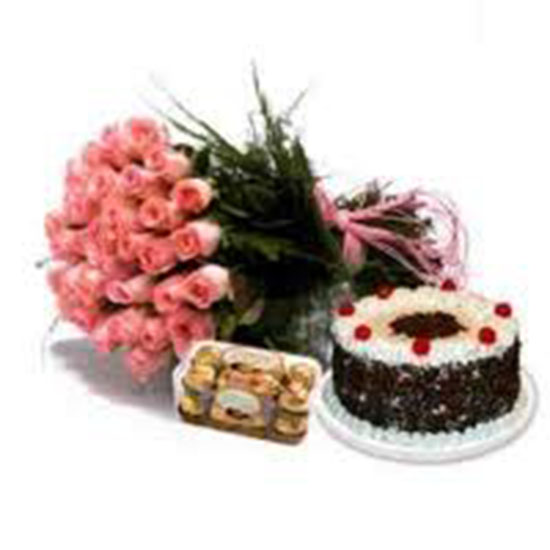 cake combo # 4Made from the finest melting chocolate and dairy cream set on a chocolate base and topped with whipped cream and chocolate bits. |