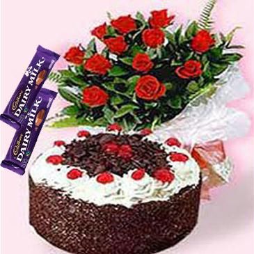 Say I love you!12 Red Roses With Cake & 150 grm candbury Choco. |