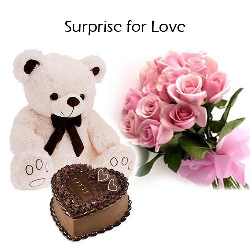 Soft Teddy N Pink Rose N Heart Shape Cake
