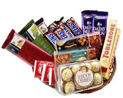 Chocolate Hamper - 19Ferrero Rocher - 16 pcs ToblerOne Chocolate - 100 gms Snickers Chocolate - 6 Nos Cadbury DairyMilk SILK Choco Bars - 5 Nos,65 gm eaach KitKat Chocolates - 3 Nos Vochelle Chocolate Bars - 3 Nos |