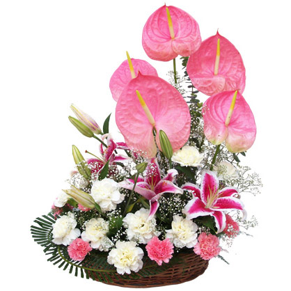 Love you dadFlower Basket - 5 lilies, 10 pink and white carnation with 5 anthorium and filler in basket. |