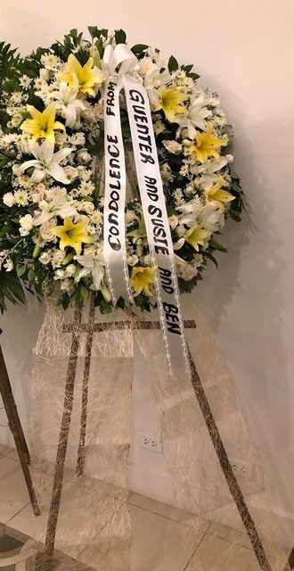 Funeral_colorfull Flower StandAs Shown:Gerbera, White Chrysanthemum & Orchid |