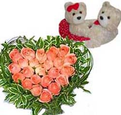 Basket Full Of Orange RosesÃLet your beloved know how much you love him/ her with these 'orange blooms'. ( 36 orange roses and couple bear). |