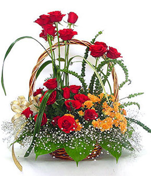 People Who Love You24 red roses and 6 yellew carnation(or champagne roses) with gypsophila and green leaves, beautiful flowers basket arrangements. - Order two days ahead. |