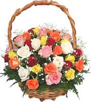 Garden Party Basket24 pieces of mix roses in a gorgeous native basket. Beautiful and delicate pastel colors flowers arranged in large fireside basket. Perfect for decoration of any ceremony or party. |