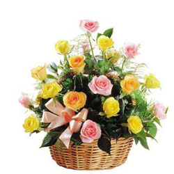 Golden DreamsWhen we have a dream, we wish to have a golden dream. Two dozens elegant pink and yellow roses come together with field of delicate baby's breath on plumose greenery, and the result is, a gorgeous display of golden beauty. A great way to show passion and what we really like to say. |